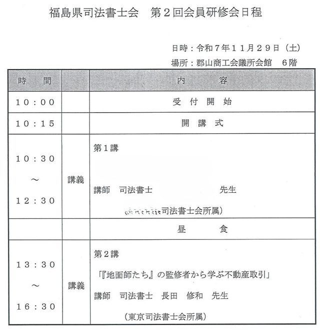 ・令和7年11月29日:福島県司法書士会さんの第2回会員研修会2講で当司法書士が講師を務めました