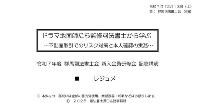 ・令和7年12月13日:群馬司法書士会さんの新入会員研修会2部で当司法書士が講師を務めました